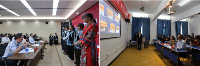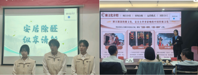 比赛现场,参赛选手们个个精神饱满,带着对创新创业的热情与憧憬走上舞台。来自不同专业的参赛选手们围绕主题,通过PPT展示、项目讲解等形式,阐述了自己的创业项目。有的团队聚焦民族文化与热门IP,提出搭载IP势能,赋予民俗新生;有的团队关注乡村振兴热点,设计智慧生态养殖,绿意引领乡村振兴革新;有的团队则从安全问题出发,设计安全除醛,纵享清新项目。选手们在台上自信从容,面对评委提问时沉着应对,充分展现了萍乡学院学子从多维度审视问题,完善想法的能力和勇于探索的创新精神,共同推动创新思维发展。