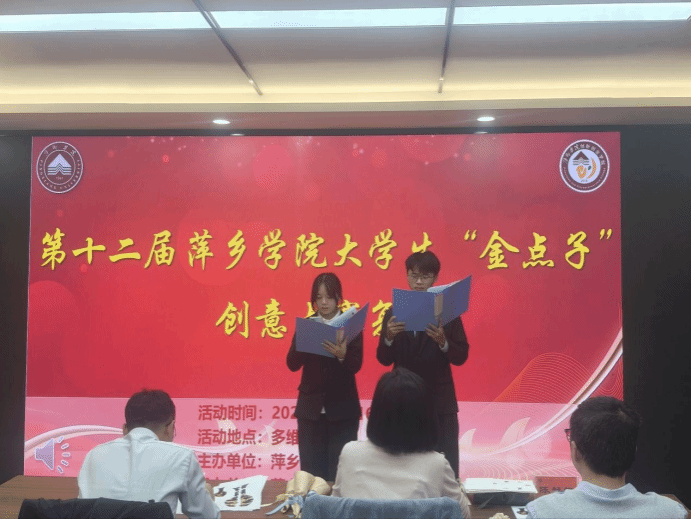 11月16日下午,萍乡学院第十二届大学生“金点子”创意大赛复赛在大学生创新就业孵化基地(多维楼)306、307室顺利举行。本次大赛由萍乡学院主办、创新创业学院承办、大学生创新创业联合会协办,主题为“创业与时代同行,创新携梦想齐飞”,大赛特邀校外江西浩邦信息技术有限公司总经理徐天祥、江西九靓贸易有限公司总经理马静、江西益众正鑫咨询有限公司董事长白新辰、江西花蝴蝶食品有限公司副总经理陈真、江西省省级创业导师陈超鋆、湖南达高科技有限公司天使投资人欧阳庆担任评委;创新创业学院院长宋杰光、创新创业学院教研科科长吴艳、大学生创新创业联合会指导老师刘仁柱出席观摩,星火创客之家学生代表、复赛项目团队代表等近200名师生参与了此次活动。此次大赛旨在提升大学生创新创业能力,营造校园科技创新氛围,为广大学子搭建展示创意与实践能力的平台。