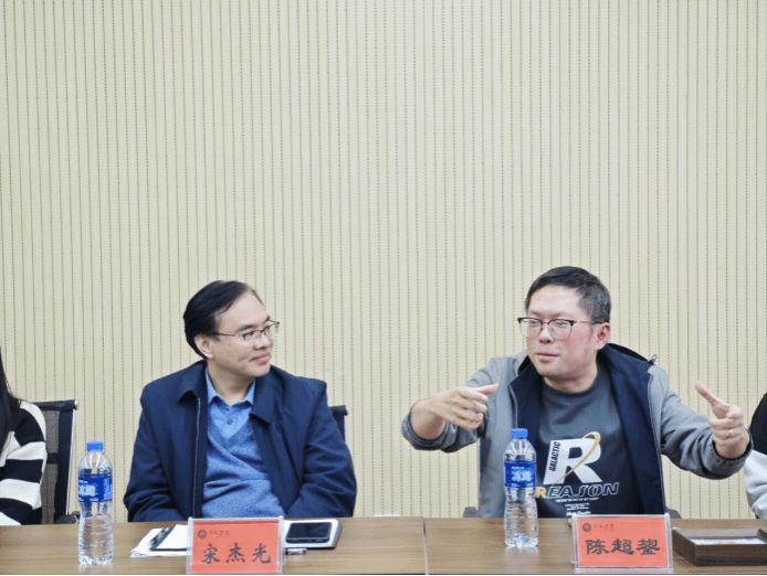 活动伊始,陈超鋆以风趣生动的方式讲解创新创业乐趣,以此来鼓励同学们以创业落地为目的积极投身创新实践能力的培养。他的分享充满激情,迅速点燃了全场氛围,让会场气氛格外热烈。在活动开场时,宋杰光赠送陈超鋆我校大学生创新创业训练计划项目作品成果《萍乡剪纸》。