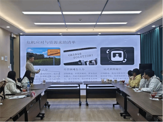 在实战指导环节,刘杰深入剖析了大学生创业面临的四大核心风险——法律、财务、市场运营与团队风险,并给出了具体应对策略。他强调,创业需筑牢“合规底线”,通过协议明确权责;善用“政策工具”缓解资金压力;坚持“轻资产验证”,从身边需求出发快速迭代产品。同时,他提醒同学们务必做好学业与创新创业的平衡,利用好校园丰富的知识资源、导师网络及低成本试错空间,将创新创业过程视为“高级社会实操”,重在能力成长。