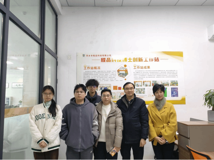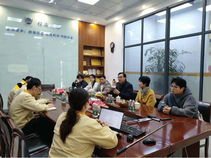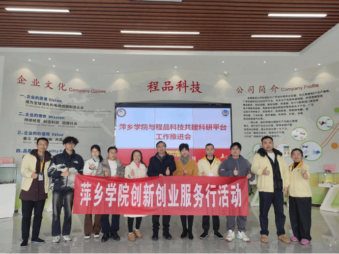 为深化产教融合协同育人,推动科研平台与地方产业需求精准对接,12月25日,创新创业学院院长宋杰光带队,大创项目《铜圈科技》指导老师廖江萍、陈伟萍及学生团队一同赴萍乡程品科技有限公司,就共建科研创新平台、开展技术攻关合作等事宜开展专项调研洽谈。调研团队一行受到程品科技副总经理贺艳华及相关部门负责人的热情接待,双方围绕科研平台建设的核心方向、合作模式等内容展开深度交流。