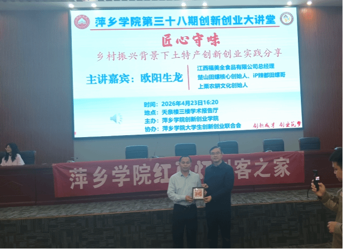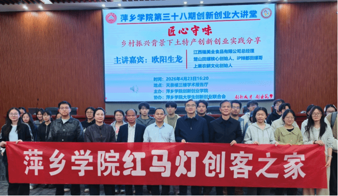 此次分享会,是萍乡学院推进创新创业教育的生动实践。欧阳生龙从基层起步、跨界转型、返乡创业、反哺家乡的奋斗故事,为广大青年学子树立了鲜活榜样,进一步激发了同学们勇于创新、敢于创业、扎根基层、服务乡村的热情与担当,引导青年学子以匠心守初心,以实干赢未来,在创新创业的道路上勇毅前行,为地方发展与乡村振兴贡献青春力量,同时也进一步营造了我校浓厚的创新创业氛围,夯实我校红马灯创客省级样板党支部的内涵建设,助推我校创新创业教育高质量发展。