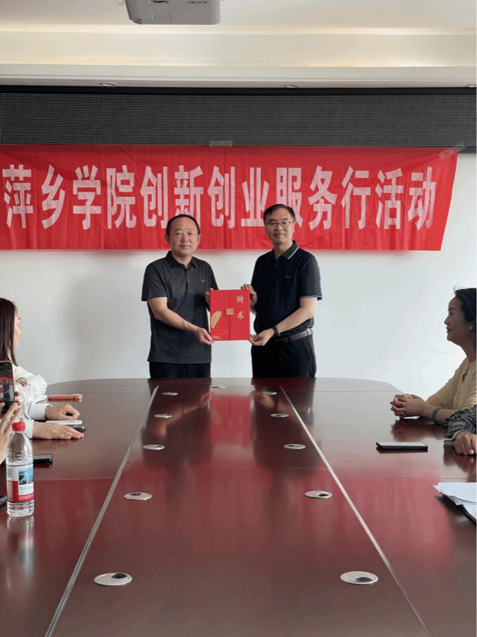 挂牌仪式圆满落成后,宋杰光为陈杰颁发了创新创业导师聘书,校企双方即刻衔接开展专题创新创业导师座谈交流会,全程紧扣《校企联动深耕双创赛道 赋能文旅产业提质增效》主题深耕细研、聚力研讨。会上,校方双创导师团结合高校育人核心职能、文旅专业人才培养特色、双创赛事实战培育、文旅创新项目孵化等核心工作,立足武功山文旅全域发展实景,精准剖析当下文旅行业新业态、酒店文旅服务新场景、青年文旅创业新赛道的发展优势与实操痛点,针对性建言献策、共谋破局思路。企业方立足文旅一线经营实操视角,详实解读山地文旅配套服务、景区旅居运营、文旅新媒体营销、研学文旅联动等岗位实操标准与人才刚需,同步分享行业前沿创业实践案例、一线服务创新经验,双向对标人才培育标准、双创实践场景,细化校企协同育人、联合孵化、定向实训全流程对接细则,凝聚多项贴合文旅产业实景的双创合作共识。