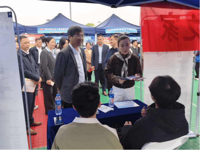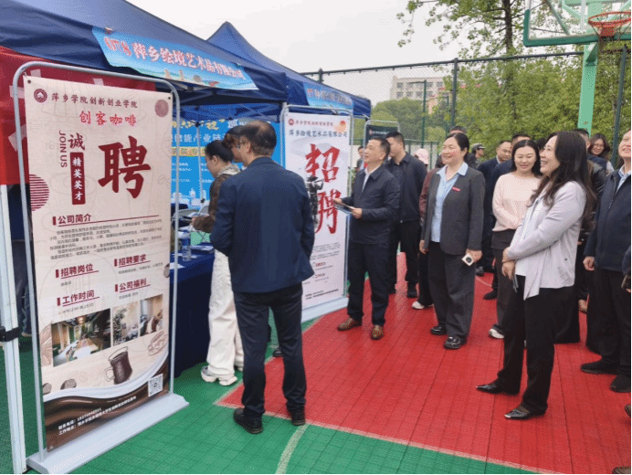 为拓宽应届毕业生就业渠道,搭建校企高效对接桥梁,4月24日上午,由我校创新创业学院和大学生创新创业联合会组织孵化基地项目参加校园招聘会,我校党委书记邱晓辉、萍乡市人社局局长陈丽、萍乡市教育局局长郭慧、我校党委副书记陈永国等领导莅临现场视察指导,创新创业学院院长宋杰光、实践科科长刘杰也到达现场指导,其他相关部门、二级学院、大创项目指导老师都到达展位指导工作,都对此次的组织工作与活动成效给予肯定与鼓励。