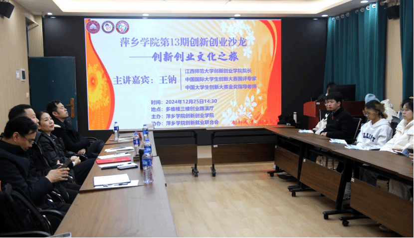 12月25日,萍乡学院第13期创新创业沙龙在大学生创新创业孵化基地(多维楼)306室举行,此次沙龙主题为《创新创业文化之旅》。沙龙特邀江西师范大学创新创业学院院长王钠作为主讲嘉宾,参加沙龙活动有萍乡学院副校长吴代赦、保卫处处长谢伟萍及创客之家成员30余人,活动由创新创业学院院长宋杰光主持。
