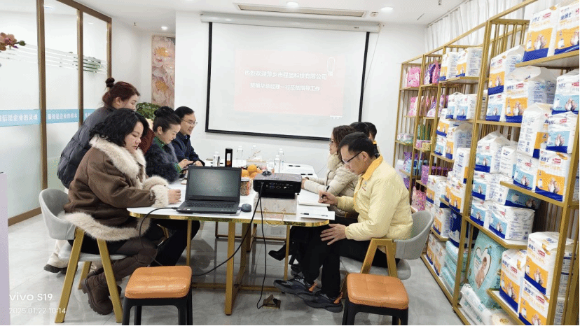 1月22日,创新创业学院院长宋杰光博士,材料与化学工程学院博士彭康亮和硕士杨雪晴,邀请萍乡市程品科技有限公司副总经理、萍乡学院外聘创新创业导师贺艳华团队前往江西丰民童乐母婴用品有限公司进行技术融合提升交流活动,团队一行受到了丰民童乐总经理、萍乡学院外聘创新创业导师贺芝等管理层的热情欢迎。