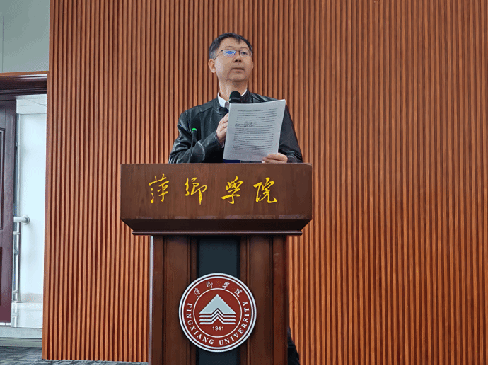 萍乡学院副校长吴代赦就本次换届暨表彰大会致辞,肯定了过去第七届创联在学科竞赛、双创活动、项目培育、双创服务等方面所取得的卓越成绩,并向新一届成员致以祝贺;再结合学校发展规划对第八届创联提出三点希望:一要当好“双创文化的深耕者”,让双创基因融入校园血脉;二要当好“双创精神的传播者”,让双创理念扎根校园;三要当好“校地融合的链接者”,让双创成果服务地方。最后,他勉励新一届创联成员以“功成不必在我,功成必定有我”的担当,共同开创我校双创教育新局面,助推我校创新创业教育高质量发展迈上新台阶。