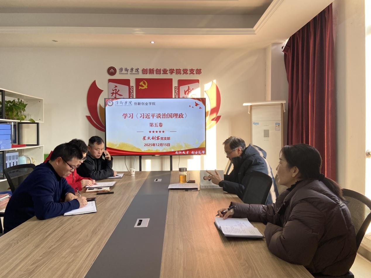 12月15日下午,创新创业学院星火创客党支部组织全体老师召开专题学习会,由院长宋杰光领学《习近平谈治国理政》第五卷核心要义。会议紧扣习近平新时代中国特色社会主义思想,结合高校创新创业教育使命与萍乡地方发展需求,引导师生在学深悟透党的创新理论中把握发展方向,将理论学习成果转化为推动双创工作高质量发展的实践动力。