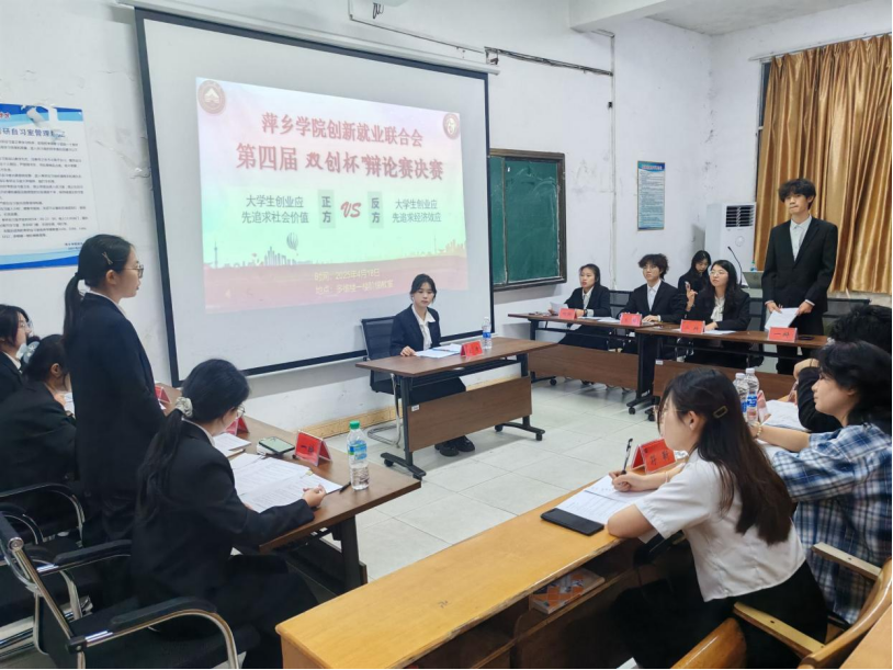 4月18日晚,萍乡学院创新就业联合会第四届“双创杯”辩论赛决赛在多维楼一楼阶梯教室拉开帷幕。本次活动特邀创新创业学院院长宋杰光、校团委副书记熊云杰、创新就业联合会指导老师刘仁柱,以及第七届创新就业联合会主席郑佳、副主席徐浩智和张琦、校辩论队队长章钧军、校学生会会长毛铭宇、校演讲协会会长符靳、校广播站站长黄舒、校电视台台长李奕欣等嘉宾亲临现场,参加此次活动的还有创新就业联合会的成员约100余人。