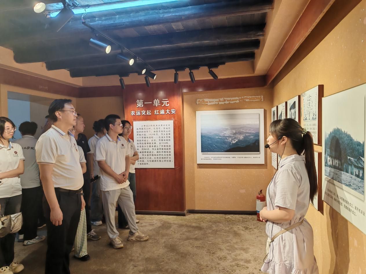 为深入学习贯彻党的二十大精神,进一步强化党团青年的理想信念教育,让青年一代深刻领悟革命精神与时代使命的紧密联系,7月7日,双创学院精心组织师生党员、团员代表赴湘东(萍乡)苏维埃旧址,开展了一场以“追寻红色足迹,勇担时代使命”为主题的党团教育活动,由创新创业学院党支部书记宋杰光带领双创学院党员教师、创新就业联合会团员代表20余人参加。