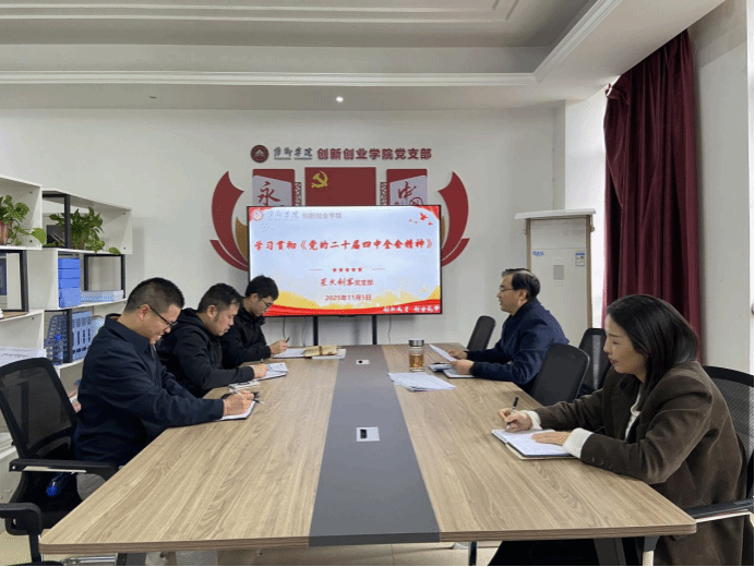 为深入学习领会党的二十届四中全会精神,切实把思想和行动统一到党中央决策部署上来,11月5日,创新创业学院星火创客党支部召开专题学习会,集中学习贯彻党的二十届四中全会精神。党支部书记宋杰光主持会议并领学全会公报,支部全体党员参加学习。