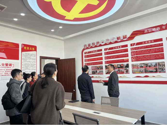 活动伊始,宋杰光领学了党的二十届四中全会公报内容,杨光远领学了四中全会百问部分内容,双方党员代表并结合校企各自优势展开深入研讨。宋杰光结合学院获批校级“样板支部”培育单位的建设经验,分享了党建引领创新创业教育的实践路径,提出以全会精神为指引,深化“党建+双创教育”模式,为企业输送更多高素质创新型人才的思路。杨光远则结合企业发展实际,介绍了党组织在技术攻坚、质量提升中的引领作用,重点分享了党员技术骨干带领团队攻克生产难题、推动产品升级的案例,诠释了“党建做实了就是生产力”的深刻内涵。学习间隙,党员们还参观了企业生产车间,在“党员先锋岗”“技术攻坚责任区”实地感受党建与生产经营的深度融合成效。
