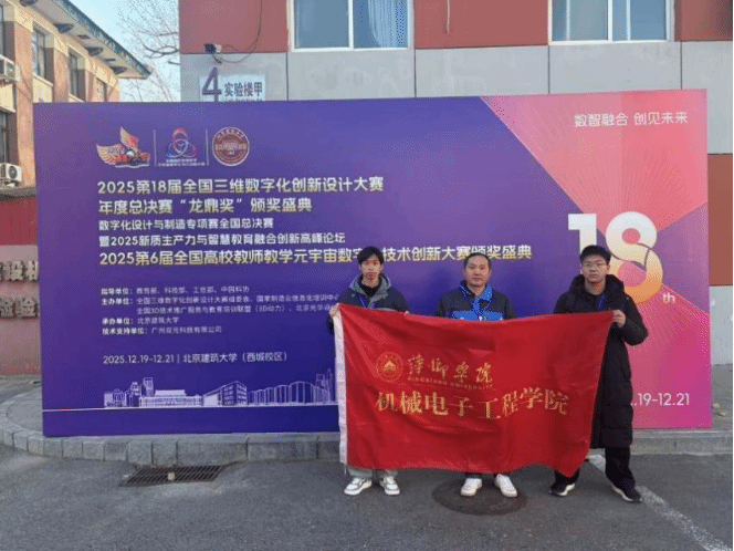 2025年12月19日至21日,2025第18届全国三维数字化创新设计大赛数字化设计与制造专项赛全国总决赛在北京建筑大学成功举办。我校机电学院邵徽萍、钟英杰、罗晓华同学组成的“安源限定观测队”,在刘耀、张剑威老师的悉心指导下,凭借参赛作品《心系安源》在激烈角逐中脱颖而出,荣获国家二等奖,充分展现了萍院学子扎实的专业技能与卓越的创新风采。
