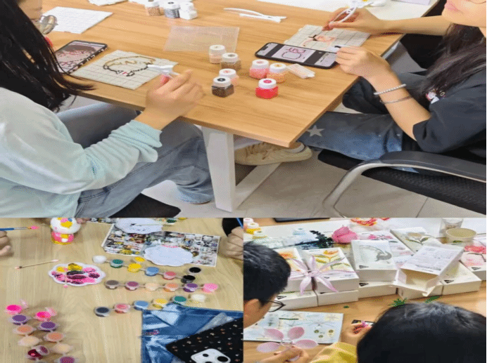 除了非遗手作,现场还准备了积木花DIY体验,大家拼出一束束永不凋谢的浪漫,搭配点缀全场的新鲜玫瑰,让现场花香四溢,随手一拍都是春日大片。扎染玫瑰手作环节里,大家用提前染好的扎染布条,一卷、二折、固定,指尖轻绕与挥出一朵朵扎染玫瑰,搭配新鲜花束与暖心便签,既是摆件也是心意满满的小礼物,浪漫值直接拉满。现场新增的拼豆DIY体验,让大家在小小拼豆中拼出可爱图案、姓名缩写、徽章熨烫定型,小巧精致的作品让大人小孩都玩到停不下来,治愈又解压。