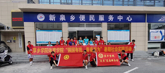 暑期期间《启航体育》项目组联合“自立”志愿服务团于7月3日赴萍乡市芦溪县新泉乡开展为期10天的暑期“三下乡”志愿服务活动,开展了安全教育、宣传红色文化、暑期作业辅导、体育专业技能培训和防治肺结核主题教育等主题教育活动,为提高农村体育教育贡献了一份力量。