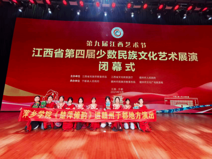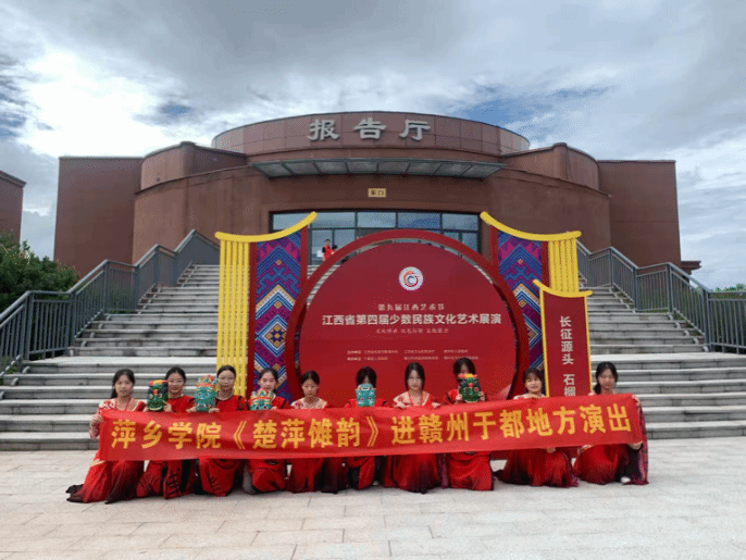 9月22日—9月25日,江西省第四届少数民族文化艺术展演在赣州市于都县精彩上演。来自全省11个地级市的参演队伍身着绚丽民族服饰,以歌传情、以舞抒怀,用鲜活的艺术表达展现江西少数民族文化魅力,奏响铸牢中华民族共同体意识的时代强音。我校大创项目《楚萍傩韵》成员在指导老师的组织带领下,前往赣州市于都县参加了此次展演活动。
