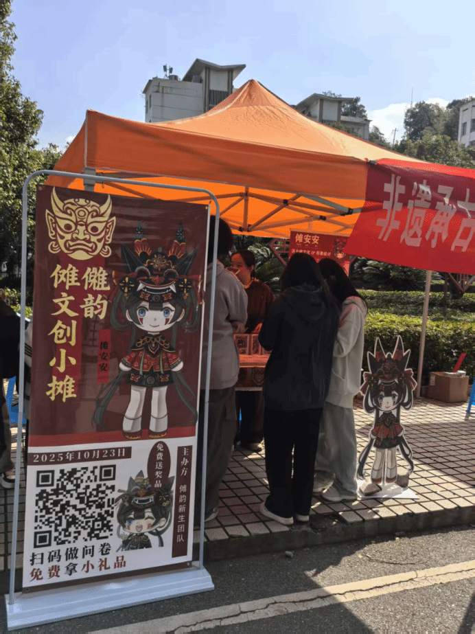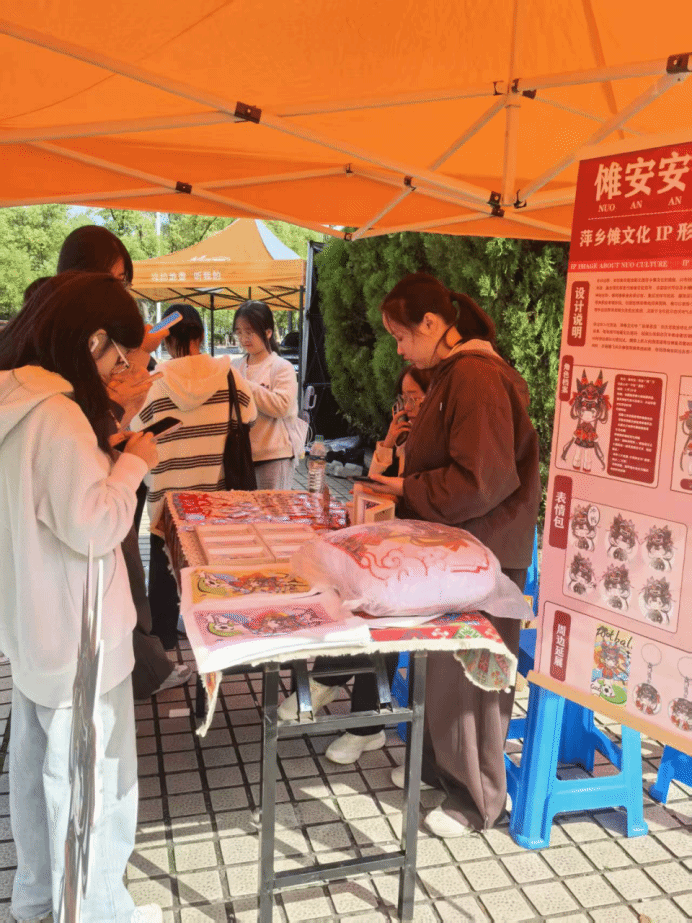 为通过创新形式,让古老的傩文化重新走进大众视野,赋予其新时代的活力。我校大学生创新创业训练计划项目《傩韵新生》团队于10月23日在文廷式广场开展“傩韵文创小摊”创业活动。此次开展傩韵文创小摊活动,便是项目践行这一理念的重要举措,希望借助文创产品这一载体,搭建起大众与傩文化之间的桥梁。