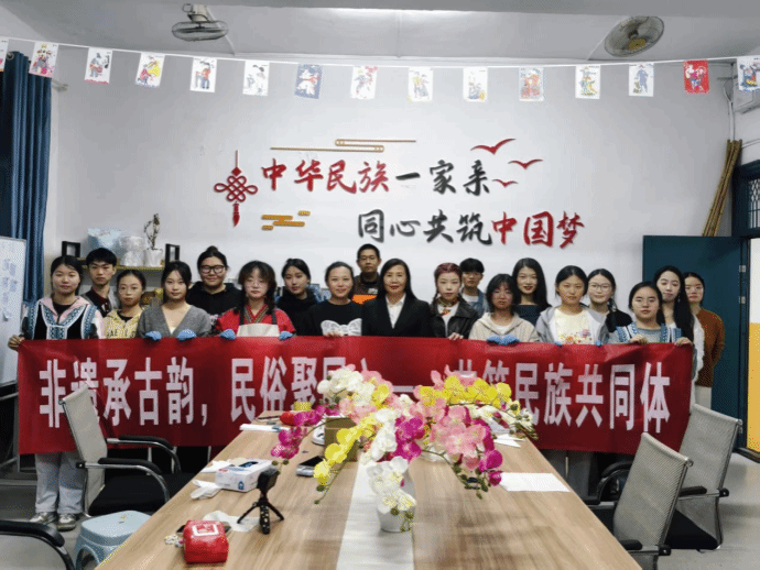 10月23日,由大学生创新创业孵化项目《苡染织蓝》承办的“非遗承古韵,民俗聚同心 ——共筑民族共同体”主题非遗文化体验活动在大学生创新创业孵化基地举行。我校党委委员、统战部长贺晓梅莅临指导,大创项目指导老师吴艳参与,吸引了百余名非遗爱好者参与。